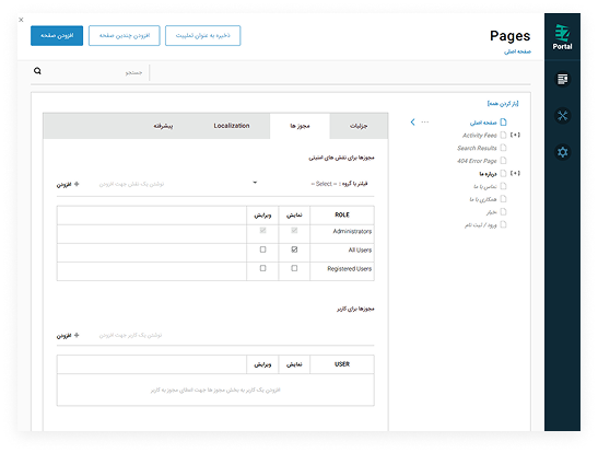- اعطای دسترسی مشاهده یا ویرایش صفحه به گروههای کاربری