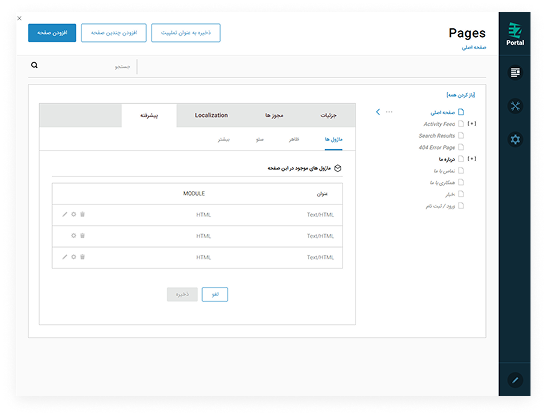 - مشاهده لیست ماژولهای (بخشهای محتوایی) موجود در صفحه