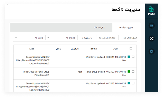 - فیلتر گزارشها: فیلتر کردن گزارشها بر اساس سایت یا نوع لاگ ثبت شده